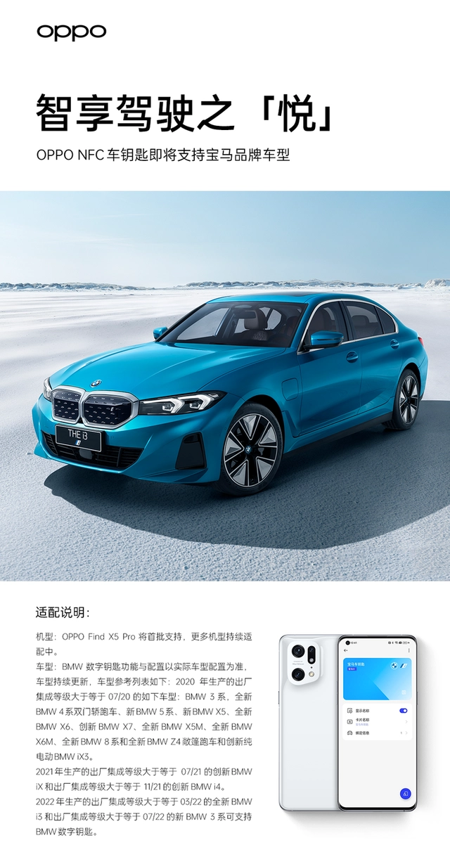 OPPO正式宣告NFC车钥匙行将支撑宝马品牌车型。OPPO Find X5 Pro将经过OTA第一批晋级支撑,更多机型继续适配中。据了解,在晋级完成后,用户只需将手机接近驾驭侧门把上的NFC感应区域即可对车辆进行解锁,在初次的数字钥匙激活后,用户在解锁解锁车门与发起车辆时均无需联网,在手机低电量形式下也可正常运用。